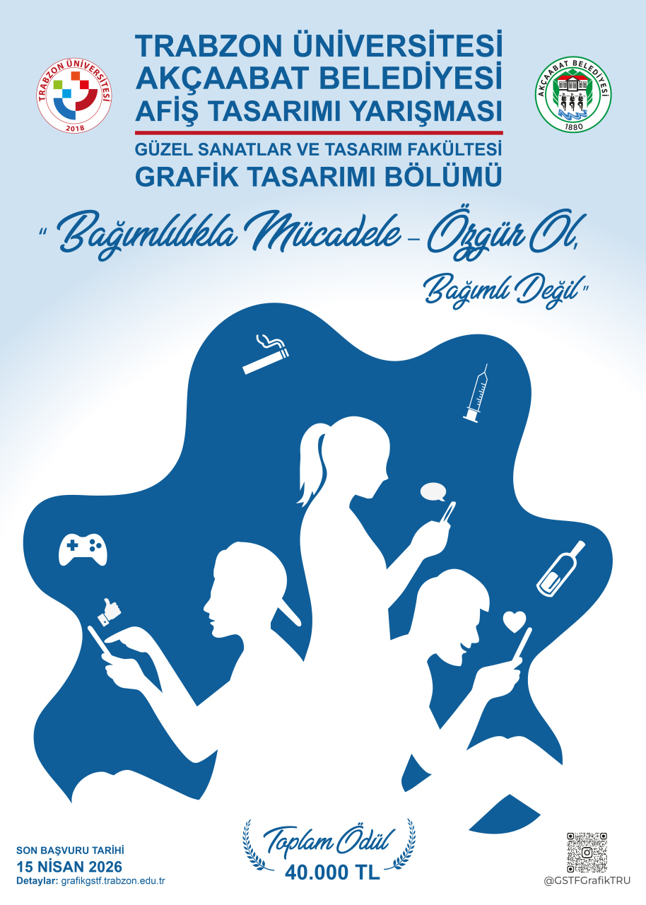 Trabzon Üniversitesi ve Akçaabat Belediyesi ortaklığında, Güzel Sanatlar ve Tasarım Fakültesi - Grafik Tasarımı Bölümü tarafından “Bağımlılıkla Mücadele – Özgür Ol, Bağımlı Değil” teması çerçevesinde afiş çalışmalarının ortaya konulması amacıyla bir afiş tasarımı yarışması düzenlenmektedir.